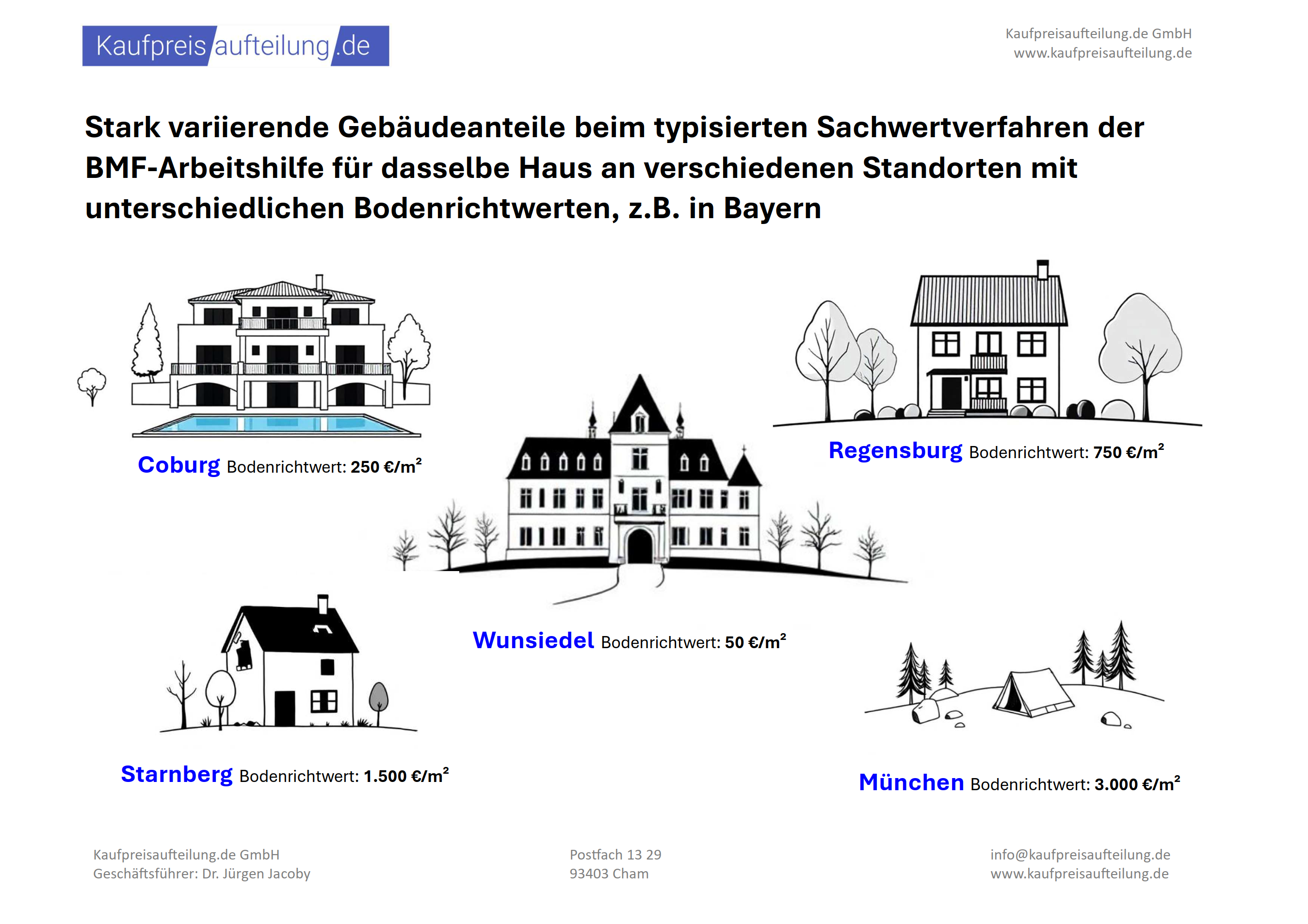 - lediglich regionale Gebäudekosten ohne Wert- bzw. Marktbezug ins Verhältnis zu lokalen Boden(richt)werten gesetzt werden.